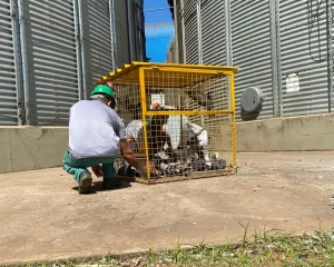 Tratamento fitossanitário com gás para o controle de pragas em grãos, sementes e subprodutos em silos ou contêineres, garantindo a integridade da carga.