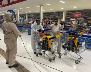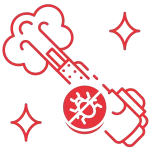 Aplicação de produtos de alto nível hospitalar através de nebulização, criando uma camada protetora que elimina microrganismos nocivos à saúde.